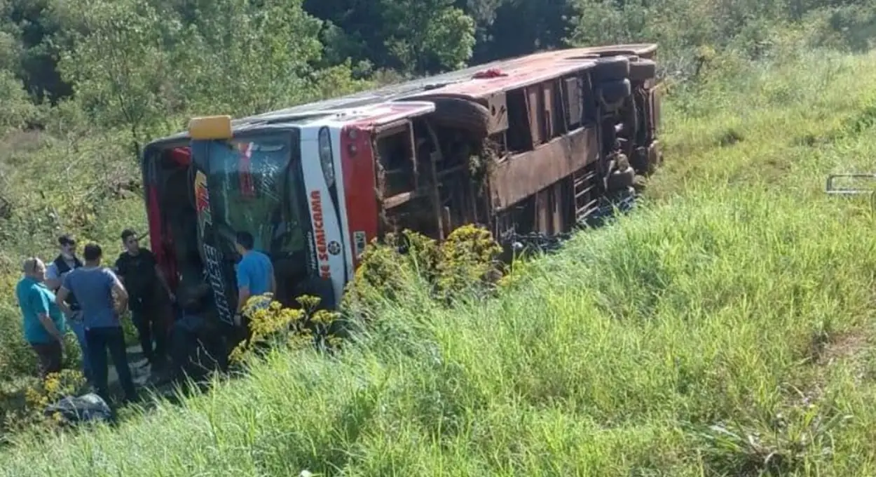 Coletivo que saiu de Andresito, cidade vizinha a Capanema, tombou na Rodovia Nacional n.º 12, com 43 pessoas a bordo