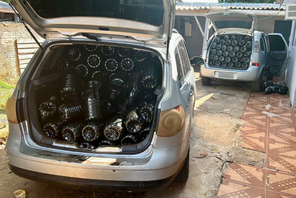 Os galões, com capacidade de 5 litros cada, estavam sem qualquer tipo de rotulagem. As equipes encontraram os produtos dentro de dois veículos e também em uma residência utilizada como depósito de mercadorias irregulares, com indícios de origem na Argentina.