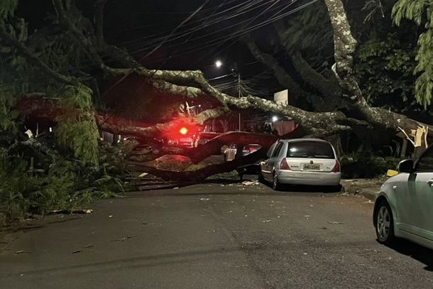 Uma tempestade acompanhada de fortes rajadas de vento provocou a queda de árvores e galhos em diferentes pontos de Foz do Iguaçu na noite desta quinta-feira (19). A ocorrência foi registrada por volta das 19h30 e mobilizou equipes da Secretaria Municipal de Meio Ambiente de Foz do Iguaçu e da Copel para atendimento imediato.