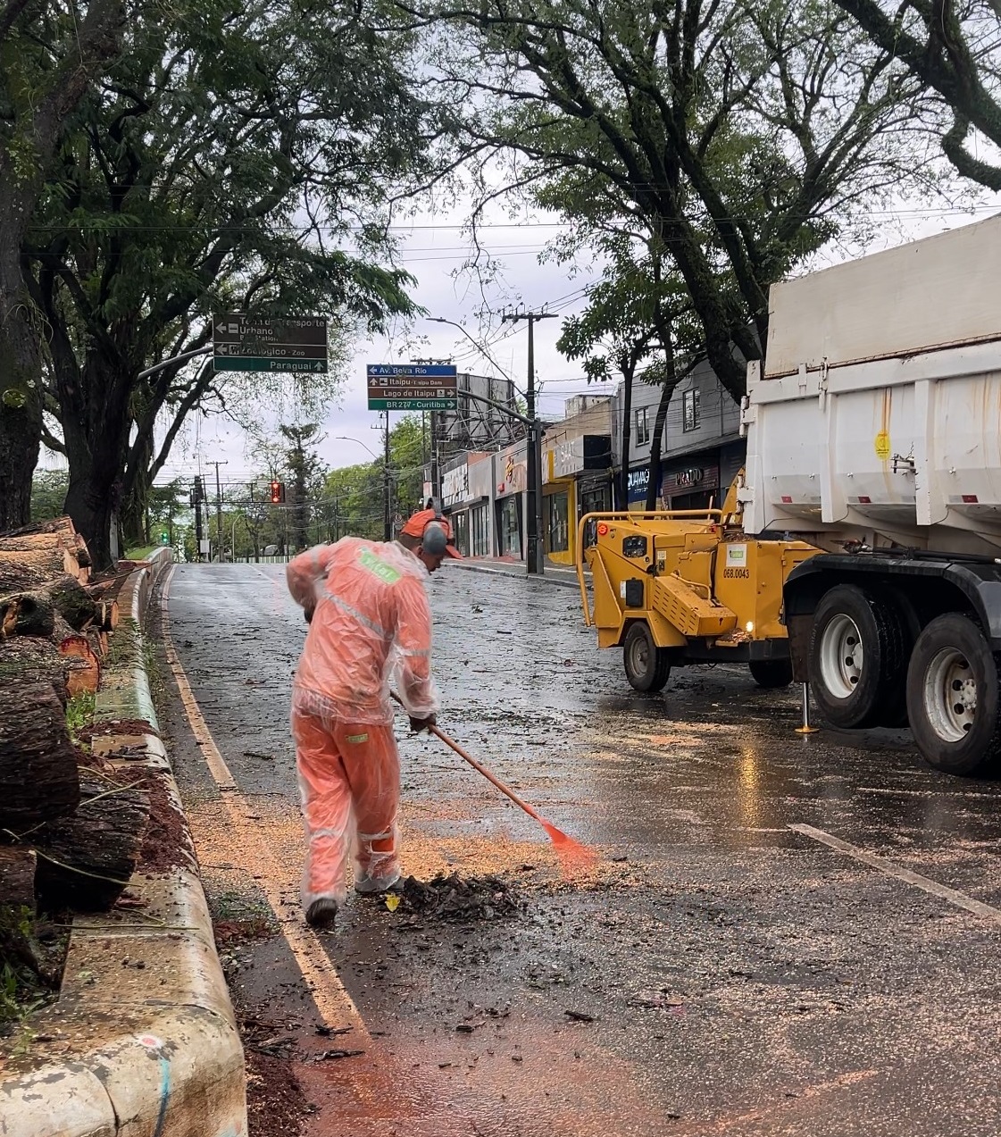 Na manhã desta segunda-feira (22), as equipes de limpeza já estavam mobilizadas. O trabalho consiste na remoção de árvores caídas e na limpeza das ruas, garantindo a normalidade no fluxo da cidade.