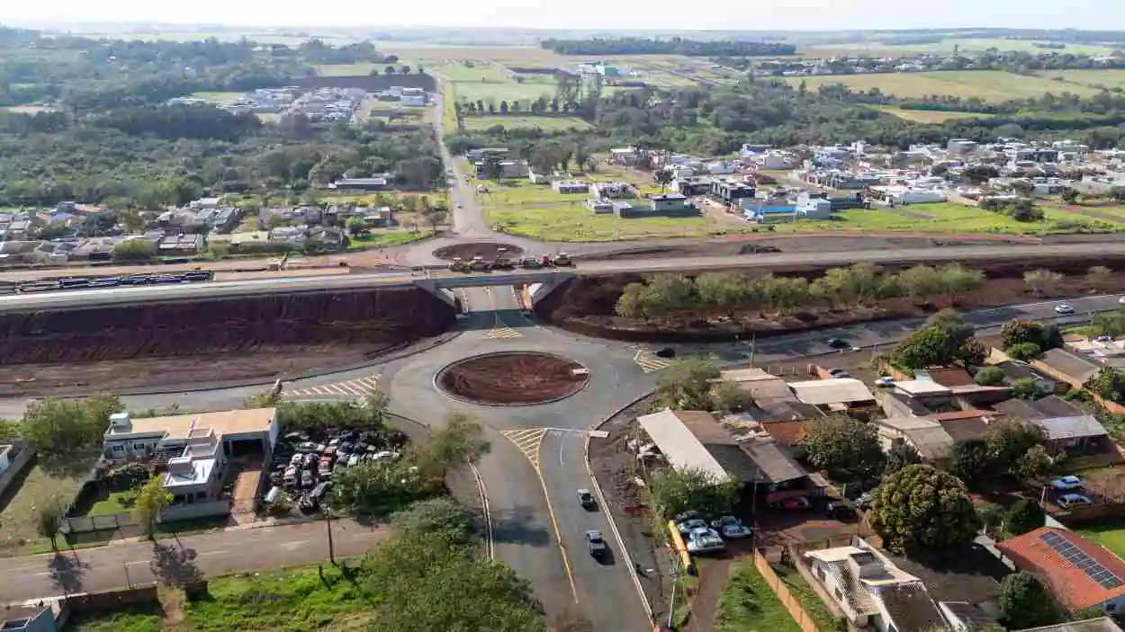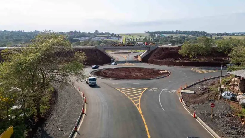 Viaduto e rotatórias da Perimetral dão novo formato a trecho da Avenida República Argentina, na Região Leste de Foz do Iguaçu. O entroncamento leva a vários bairros, a um hospital particular e à área rural do município.