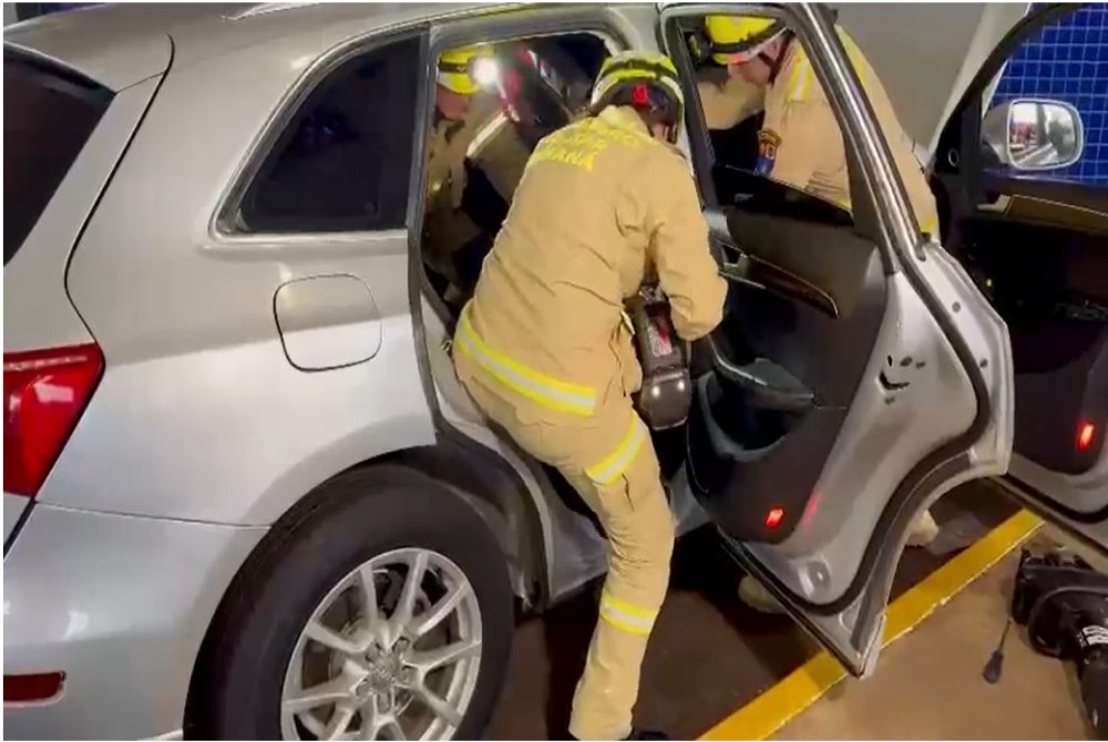 Durante a inspeção, foi identificado um fundo falso no assoalho de um veículo com placas paraguaias, onde estavam ocultados 73 kg da droga. A retirada da substância só foi possível com o auxílio do Corpo de Bombeiros.