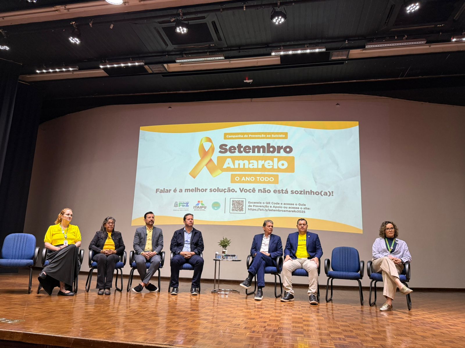 A Prefeitura de Foz do Iguaçu iniciou nesta segunda-feira (1º) a campanha Setembro Amarelo 2025, voltada à prevenção ao suicídio e à promoção da saúde mental. O evento de abertura ocorreu no auditório da UDC Faculdades, com a presença do prefeito General Silva e Luna, do vice-prefeito Ricardinho, do secretário de Saúde, Fabio de Mello, e do presidente da Câmara, vereador Paulo Debrito.